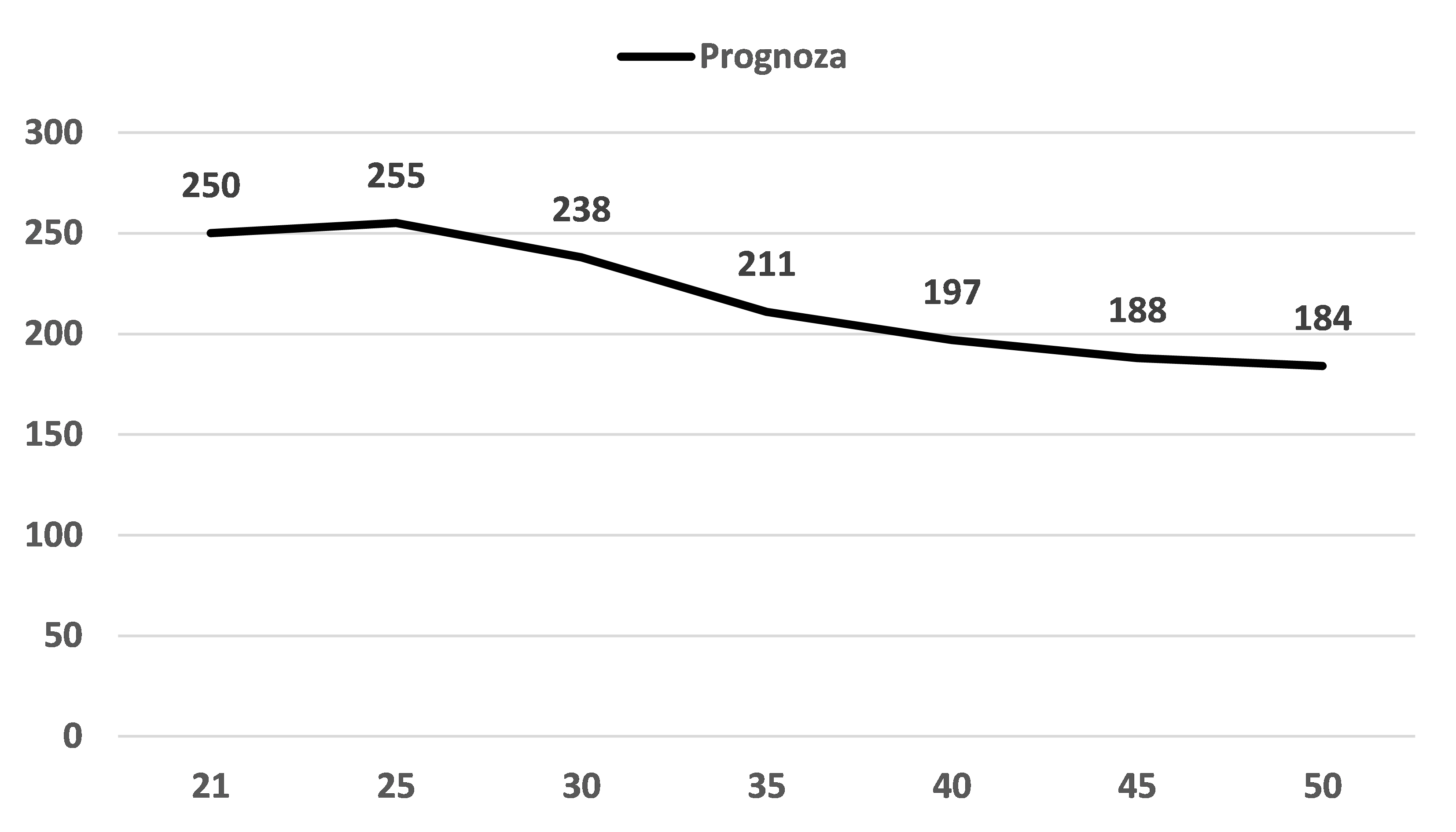 Rys. 4. Możliwa ewolucja średniej ceny hurtowej EE [zł/MWh] w Polsce